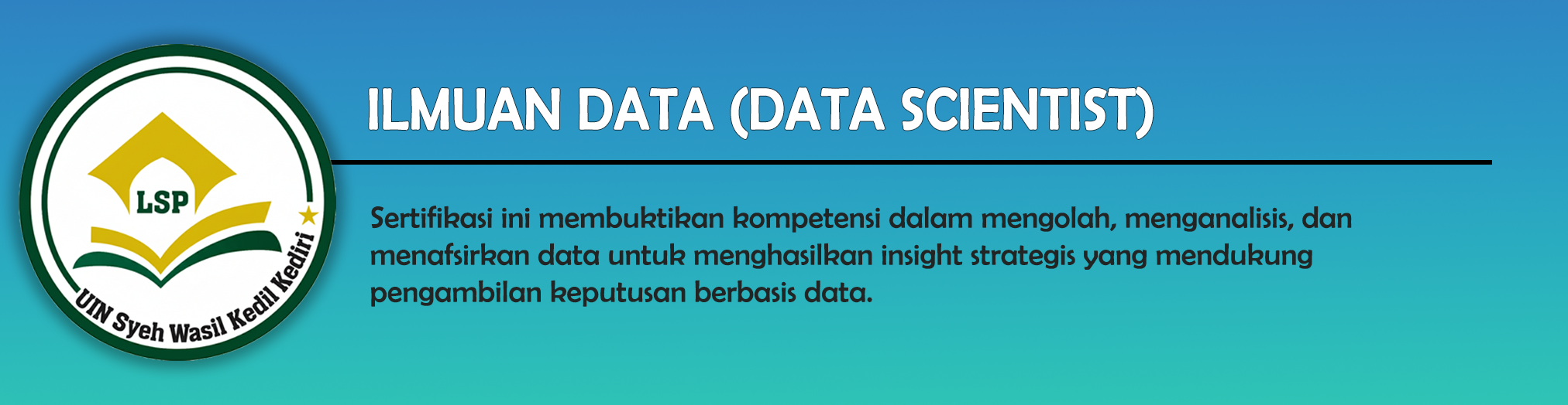 Skema Sertifikasi Okupasi Ilmuan Data (Data Scientist) adalah Skema Sertifikasi Okupasi yang dikembangkan oleh Komite Skema Sertifikasi LSP Universitas Islam Negeri (UIN) Syekh Wasil Kediri untuk memenuhi kebutuhan tenaga kerja kompeten yang banyak dibutuhkan oleh dunia usaha/industri yang bergerak di bidang Artificial Intelligence subbidang Data Science, serta kebutuhan sertifikasi kompetensi kerja di LSP UIN Syekh Wasil Kediri. Kemasan kompetensi yang digunakan mengacu Keputusan Menteri Ketenagakerjaan Republik Indonesia Nomor 299 Tahun 2020 Tentang Penetapan Standar Kompetensi Kerja Nasional Indonesia Kategori Informasi dan Komunikasi Golongan Pokok Aktivitas Pemrograman, Konsultasi Komputer dan Kegiatan yang Berhubungan dengan itu (YBDI) Bidang Keahlian Artificial Intelligence Subbidang Data Science. Skema sertifikasi ini digunakan sebagai acuan pada pelaksanaan assesmen Sertifikasi LSP UIN Syekh Wasil Kediri dan memastikan kompetensi asesi pada Jabatan Ilmuwan Data (Data Scientist).